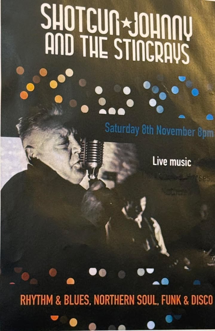 🎶 Something a little different this Saturday! 🎶 Join us from 8pm for Shotgun Johnny and The Stingrays — bringing you the best of rhythm & blues, northern soul, funk and disco. Get ready for a boogie and a brilliant night of live music! 💃🕺✨