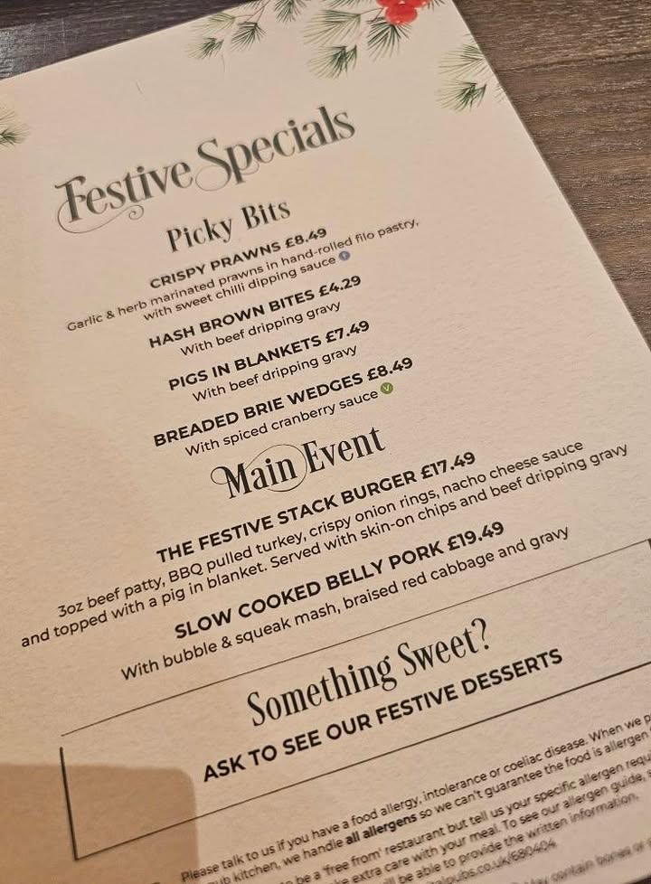 ✨ Pinch, punch — it’s the last first of the month! ✨ Before December starts flying past our eyes, don’t forget to pop our events into your calendar! We’ve got a little something for everyone this month, and if you’re joining us for food, we highly recommend booking. Our festive “picky bits” menu is also running alongside our main menu — think festive burgers (extra sprouts for me!), indulgent prawns, gooey brie and of course… saving room for pudding! 🎄🍔🧀 If you’ve got any questions about our events, just drop us a message. Please note: Wreath workshop, festive night & kids events are pre-booking only — get in touch to secure your spot! 🎁✨