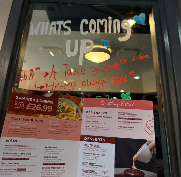 Love is in the air this Valentine’s at The Two Pointers ❤️ Join us for 💘 A Taste of Love 💘 on Valentine’s Day from 2–5pm for an afternoon of great food and live music. Indulge in 2 mains + 2 drinks for £26.99 — and because it’s the day of love, why not treat each other to a starter and dessert too? 🍽️🍷🍰 Whether it’s a romantic Valentine’s date or a Valentine’s meal with friends, Oscar will be singing love songs from 2:30–4:30pm to set the perfect mood 🎶💕 You all loved our festive night, so don’t miss out on this one — drop us a message to get booked in! ✨